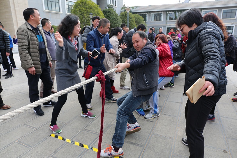 首先进行的趣味活动是赶猪进栏,在平坦的水泥地上,职工用手中的拍子用心的赶猪,各显控球能力和手眼协调能力,小猪在大家的努力下越来越听话,顺利进入猪圈。紧接着是搬运宝珠趣味活动,职工用手平端乒乓球拍,把乒乓球放在球拍上迎风奔跑,稍不注意乒乓球就落地,乒乓球掉落现象时有发生,惹得大家发出阵阵善意的笑声。拔河比赛各队尽显实力,比赛时互不相让,双方队员握紧了绳子,脚蹬着地,身体向后倾,拼命的向自己方向拽绳子,绳子中间的红绸带不停地移动着,双方队员的啦啦队齐声呐喊,不停地为自己队擂鼓助威,终于决出胜负。最后是双抠比赛,比赛采用逐轮淘汰制,整个比赛精彩激烈,赛场上职工精神饱满、沉着应战,斗志昂扬,不仅增进了友谊,还提高了技艺。